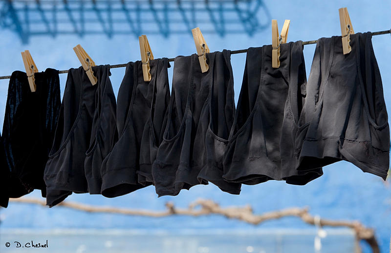 Le 19 mai 2014, le maire FN de Béziers a interdit par décret municipal d’étendre le linge aux balcons et fenêtres des immeubles visibles des voies publiques, sauf entre 22 heures et 6 heures du matin. L’argument serait esthétique…! Etendre devient alors un acte militant. Résister à l’aseptisation, maintenir ce trait d’union entre les familles d’ici ou de là-bas, c’est l’un des sens forts du projet “100 dessus-dessous”, porté par cinq amies, 3 photographes, Danielle Dupré, Diane Chesnel et Véronique Laurolillo associé à deux écrivaines Christine Nicolaus et Marie-Line Musset fascinées par ces lessives séchant au soleil dans les villes et les villages du monde entier. Blanches et noires ou bien colorées, tristes ou joyeusement coquines, expressions d’une vie solitaire ou d’une vie quasi tribale. Parfois si harmonieuses, poétiques ou étonnantes, elles dévoilent toujours une partie de la personnalité de leur auteur.